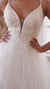 Bring your fairytale wedding to life in this dreamy A-line bridal gown. Crafted from layers of luxe tulle, this gown features sparkling glitter lace appliqués and a plunging V-neckline. The sheer lace back gently extends to the mid-back, adding a romantic and elegant finish....- $325.00
