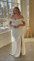This off-white stretch satin gown hugs your curves with daring elegance. Off-the-shoulder straps and a ruched waist highlight your silhouette, while a leg slit adds bold sophistication. Perfect for making a striking statement on your wedding day. • Off-shoulder neckline with pleated bodice• Ruched...- $225.00