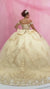 This off-shoulder ball gown features a romantic silhouette designed for quinceañera celebrations and formal birthday events. The structured bodice is accented with delicate floral appliqué, creating a refined yet youthful look. A full ball gown skirt adds volume and movement without overwhelming the design....- $399.00