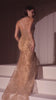 Make a stunning entrance in this mermaid gown designed for timeless elegance. The plunging V-neckline with delicate thin straps is adorned with a pearl and lace motif, while the layered embellished fabric adds depth and luxury. The fit-and-flare silhouette sculpts the figure beautifully, and the lace-up corset back ensures a flawless fit. Perfect for formal occasions, black-tie galas, or prom nights, this gown is the definition of sophistication.