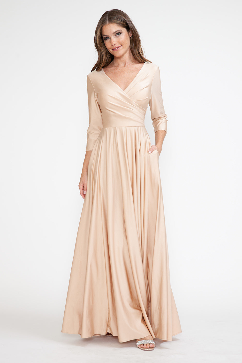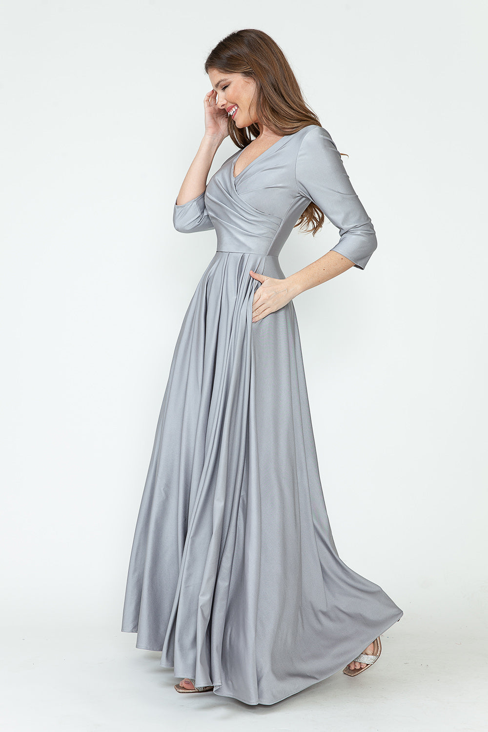 3/4 Sleeve Wrap Top Pleated Flare Pocketed Dress crafted for a refined, occasion-ready look.