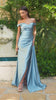 Off-Shoulder Ruched Satin Gown by Cinderella Divine CD393