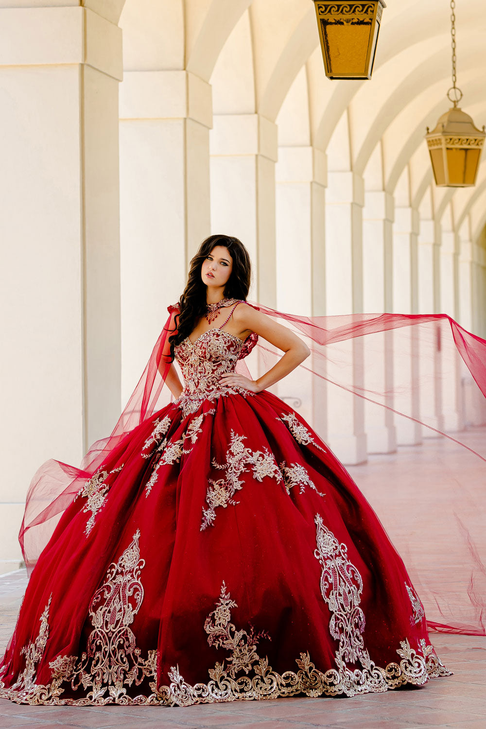 • Command attention on your big day with the striking PQ1016 gown. This strapless ball gown showcases a romantic sweetheart neckline and a detachable embroidered cape that adds regal flair. The bodice is richly detailed with shimmering stones and embroidery, while the glitter tulle skirt flows gracefully with every step. The adjustable lace-up back ensures a flawless silhouette from every angle.