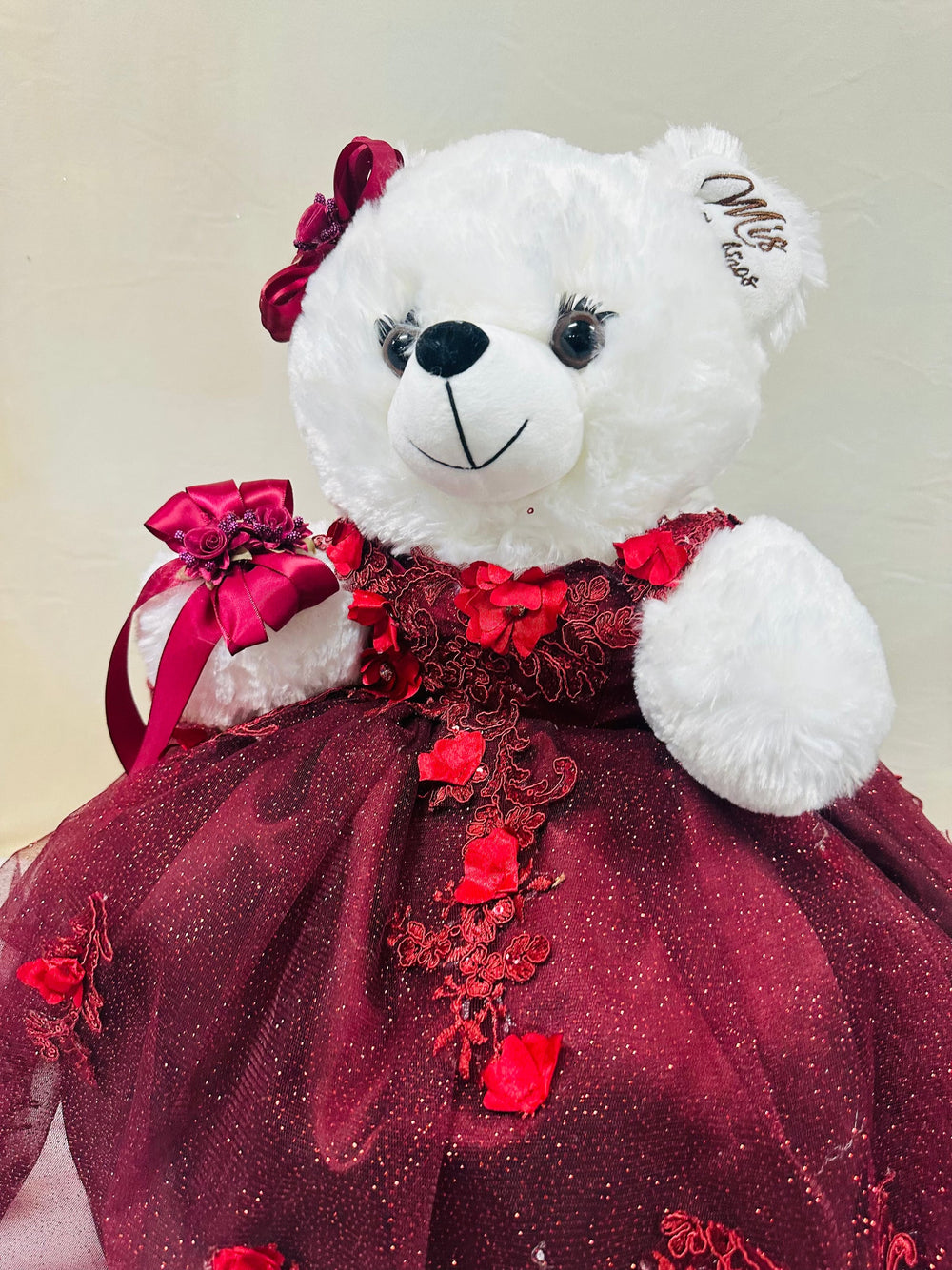 This adorable Teddy bear Quinceañera doll is crafted with attention to detail and perfect for special occasions.